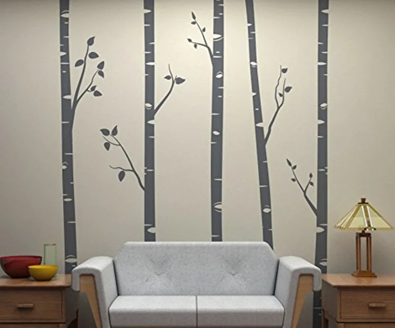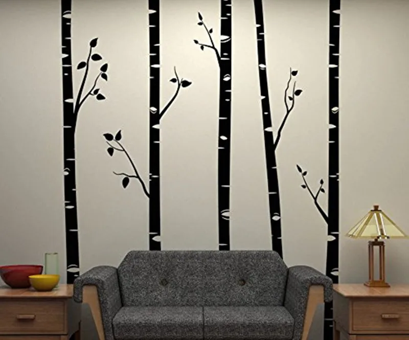 BEST QUALITY 5 Large Birch Trees With Branches Wall Stickers for Kids Room Removable Vinyl Wall Art Baby Nursery
